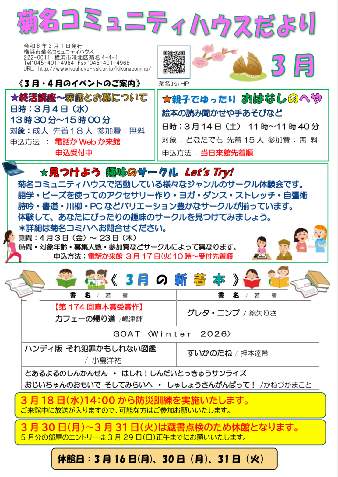 『菊名コミュニティハウスだより』3月号ご案内